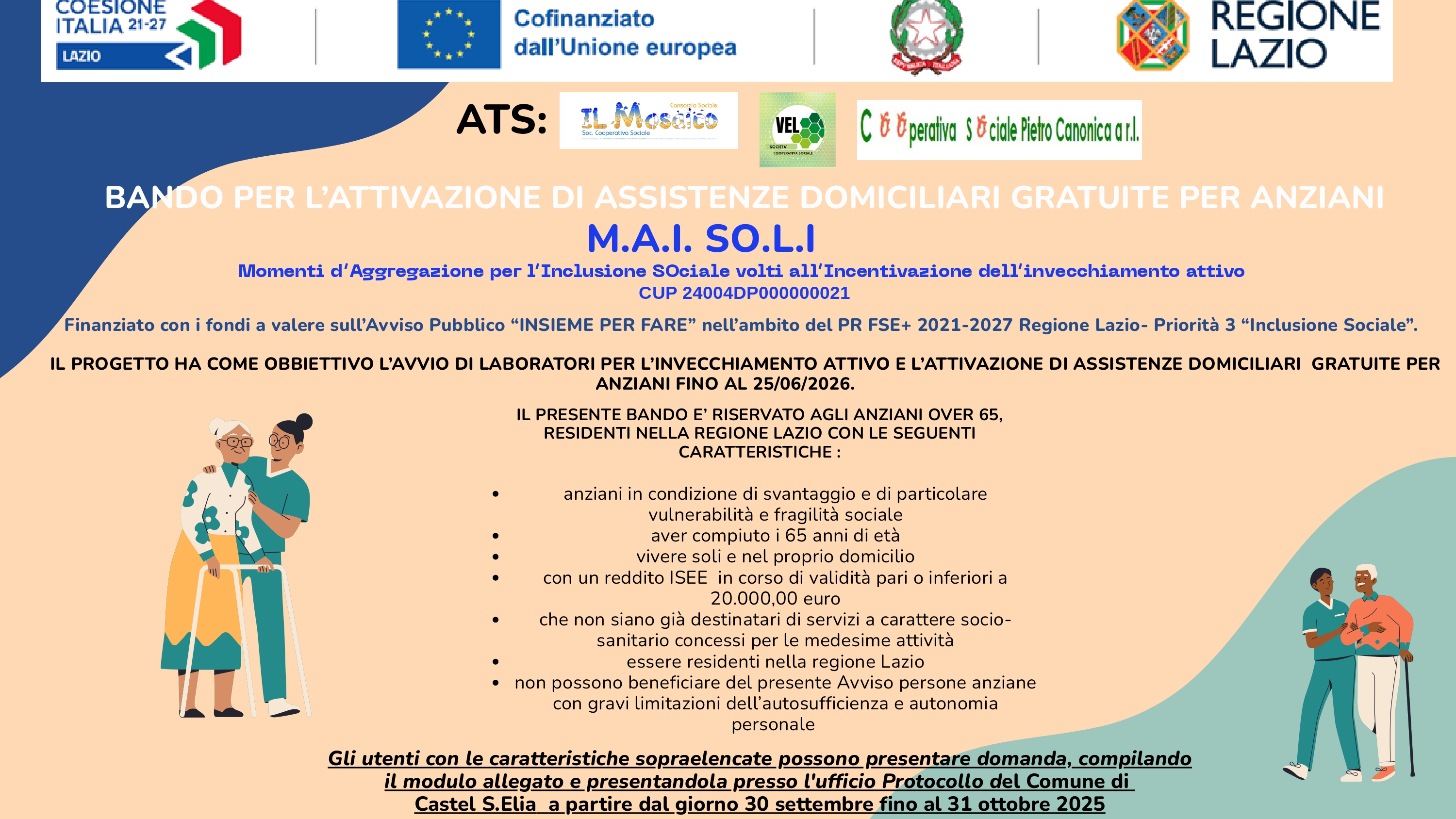 Prorogata al 31 ottobre la scadenza per le domande del progetto M.A.I. SO.L.I., organizzato dalla coop.va "il mosaico" con la partnershp del Comune.